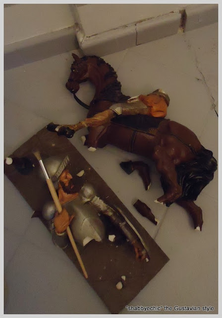 armato di cavallo e pennello al posto della lancia